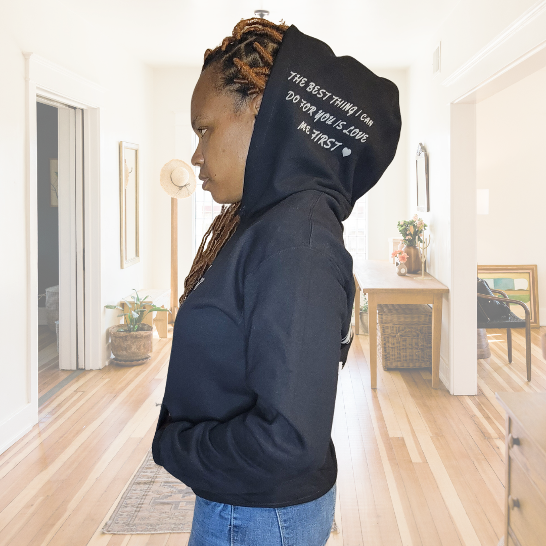 Hood print states: THE BEST THING I CAN DO FOR YOU IS LOVE ME FIRST